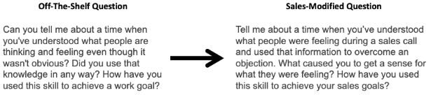 - Modify the off-the-shelf structured interview questions to better fit a sales role. See this example: